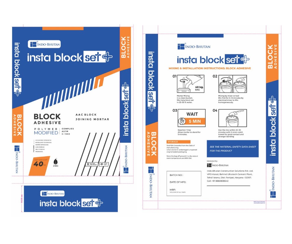 Insta Block Set+™ smart bond (AAC block joining mortar) is a ready to mix, self curing cementitious mortar for laying of AAC, CLC, Hollow concrete blocks and bricks. It’s a factory made premixed mortar blended with carefully selected raw materials such as graded sand, mineral binders and ordinary Portland cement (OPC) in combination with selected polymeric additives which help in providing mechanical bond and adhesion between the blocks and block to surface. Designed for use with water to produce high strength thixotropic mortar, Insta Block Set+ smart bond is manufactured by following strict quality norms and is in compliance with C 1660-09 ASTM standards (www.astm.org), a worldwide standard followed for thin bed mortar for autoclaved aerated concrete masonry that meets the requirements of National and International standards.